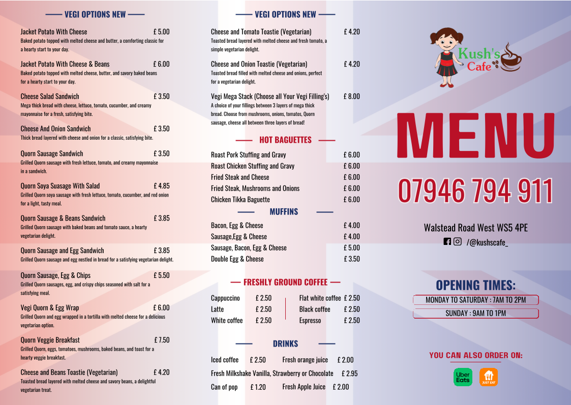 If you haven’t explored Kush’s Cafe yet, you’re missing a hidden gem in Walsall. Ideal for a serene breakfast with friends or a quick lunch, it stands out for its commitment to quality food coupled with excellent service. Come experience for yourself the unique charm and delectable offerings that keep customers coming back for more.
